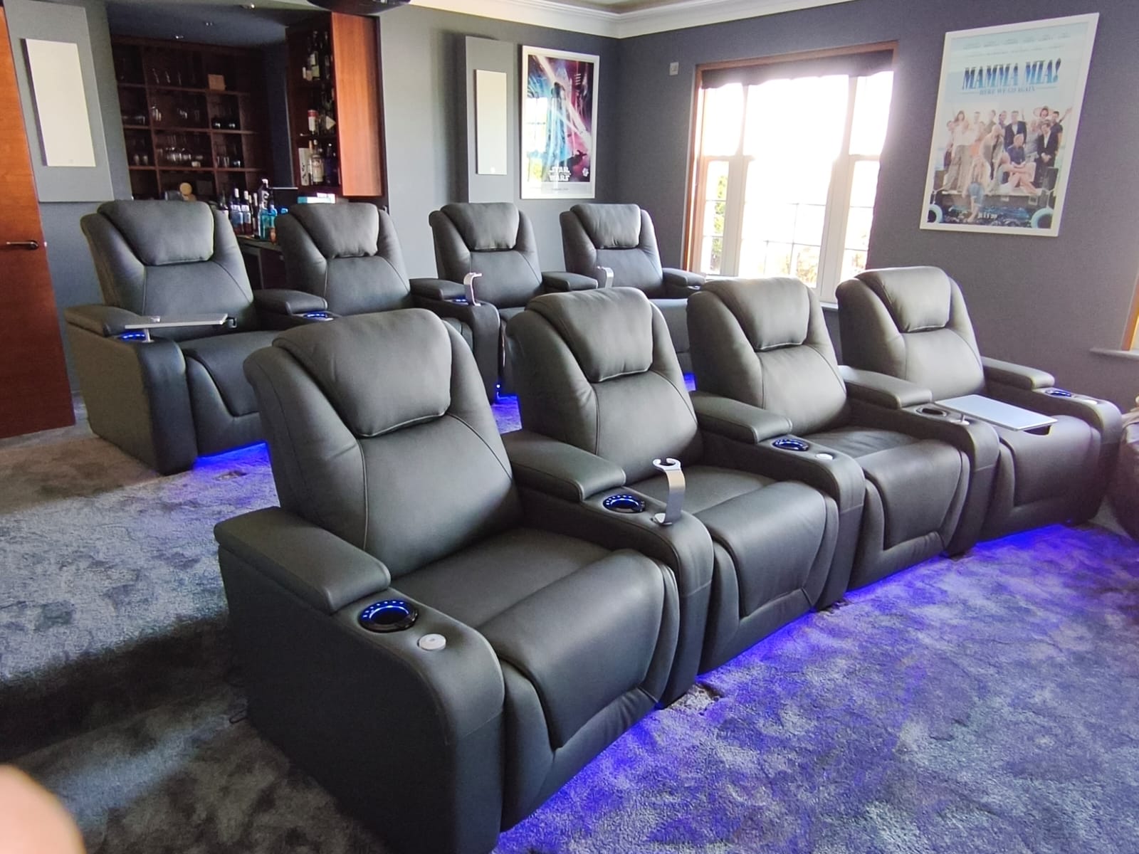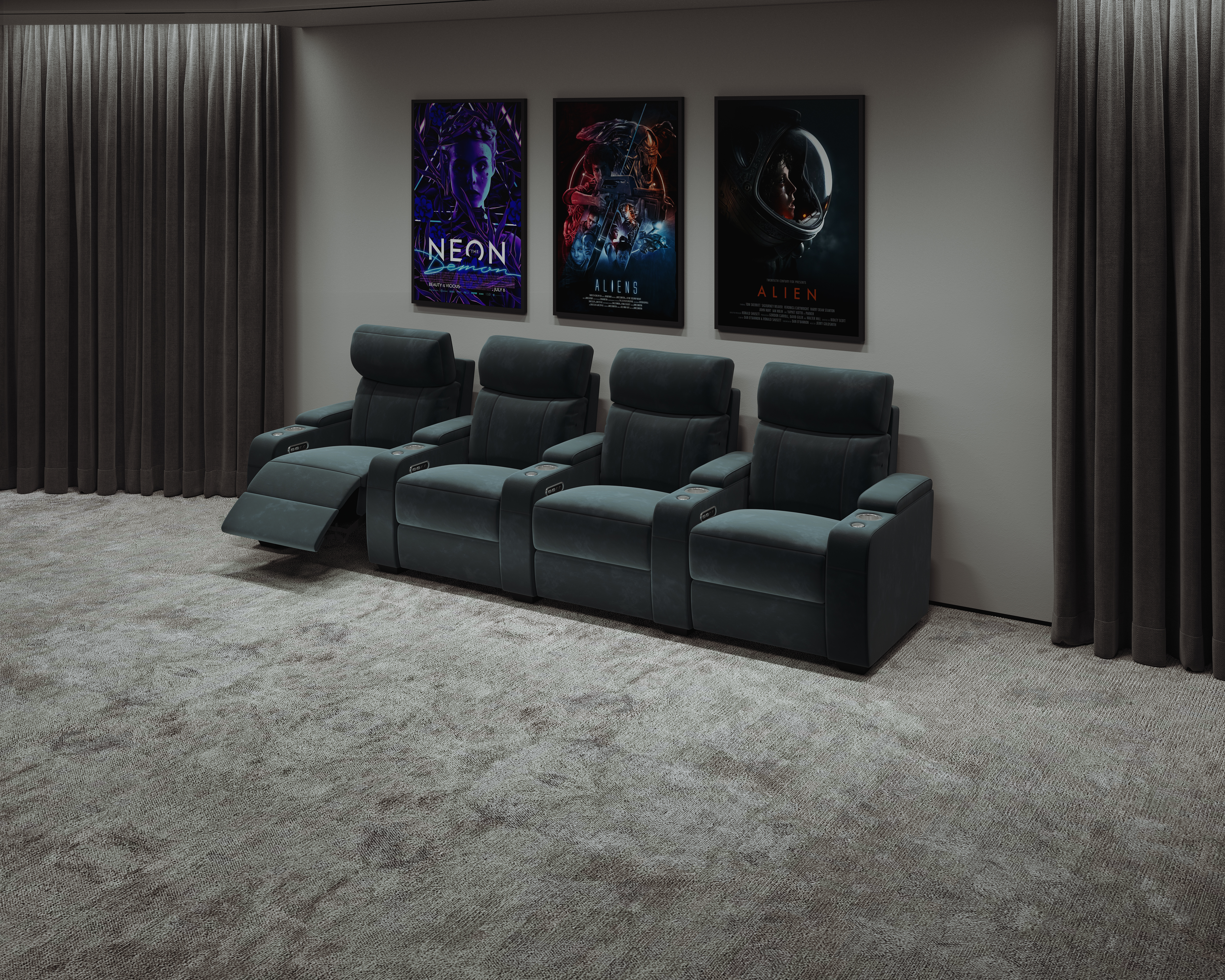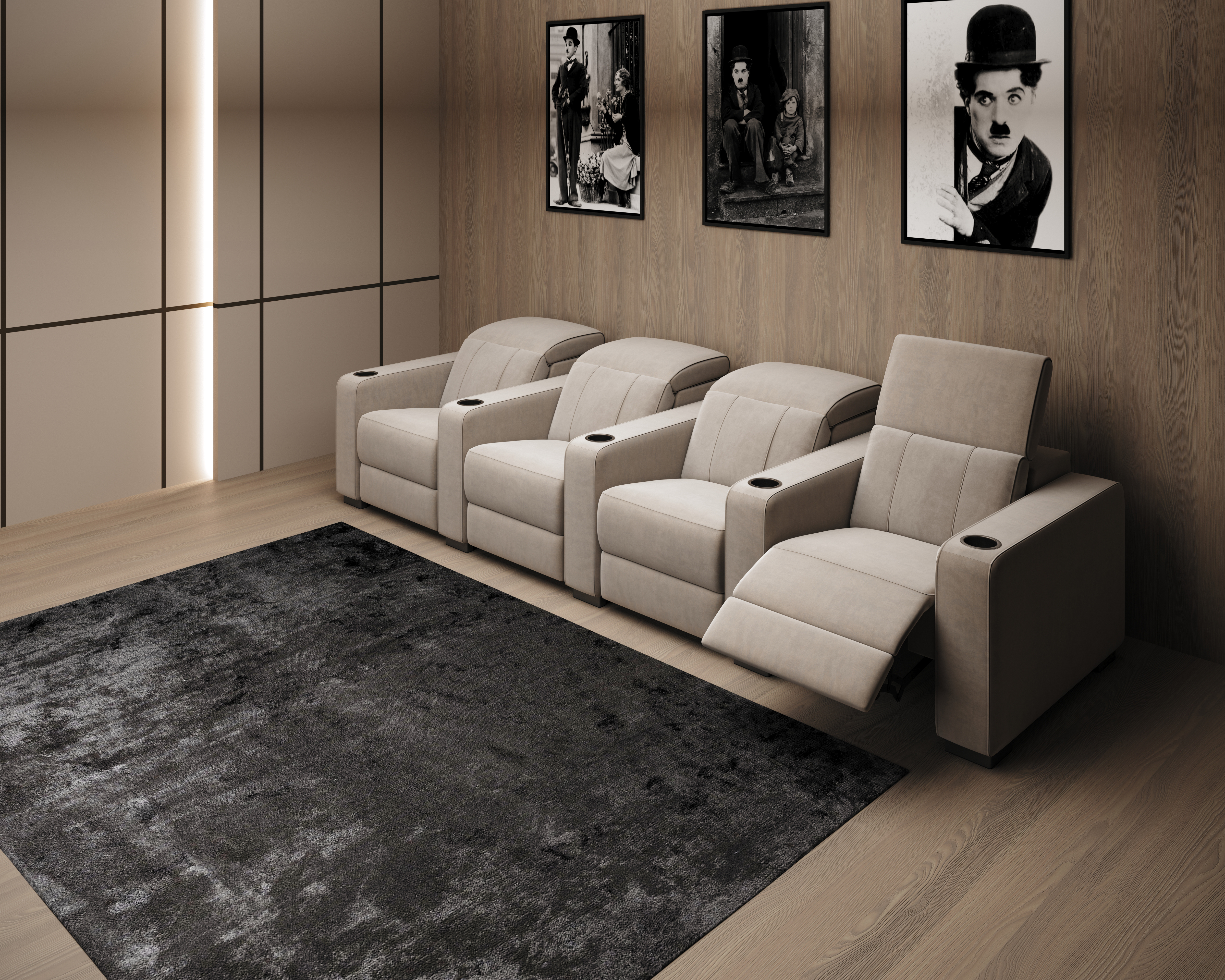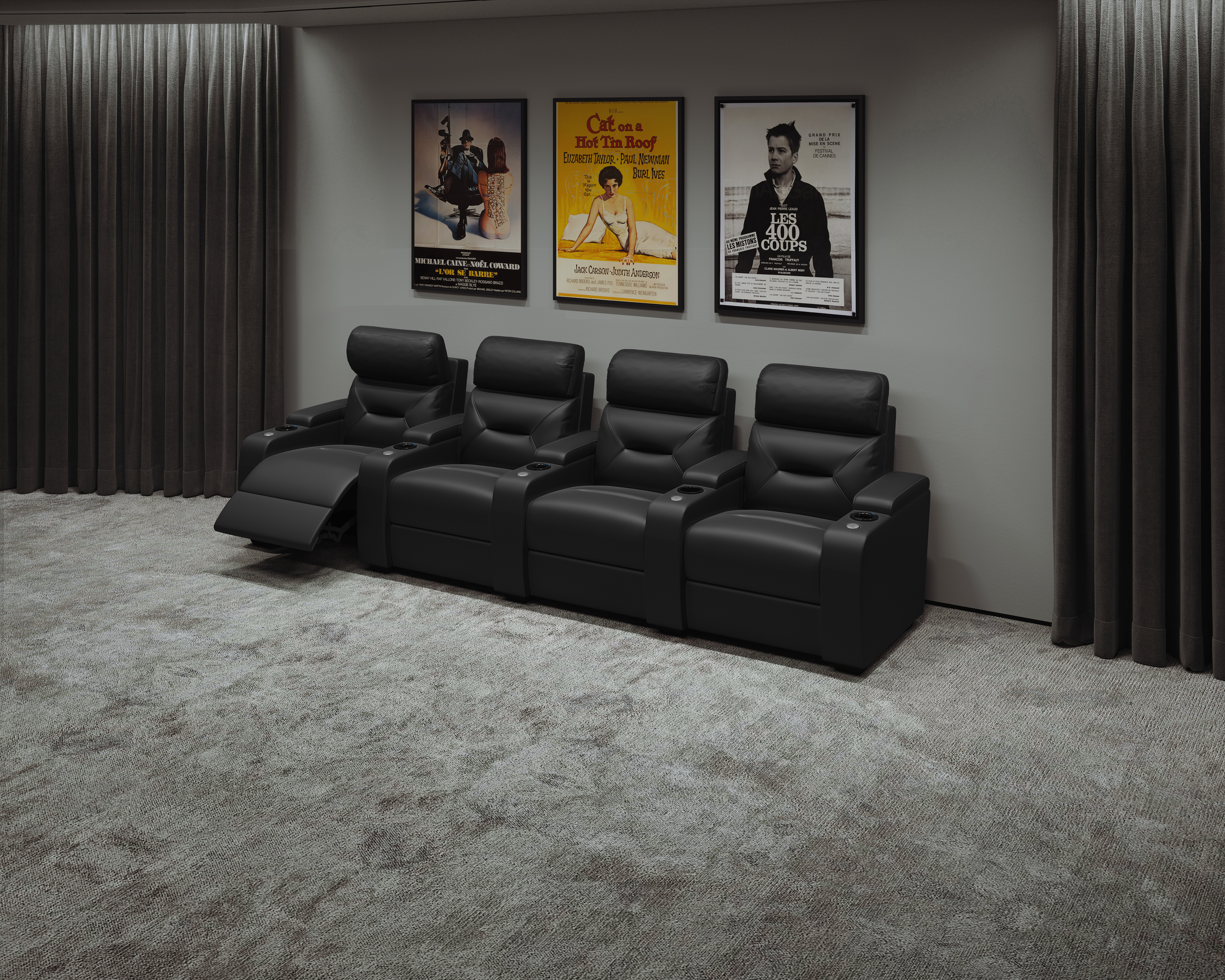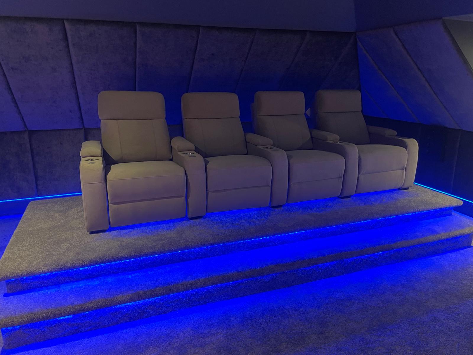 Bioscoopbanken, bioscoopstoelen, relaxfauteuils, slaapbanken
